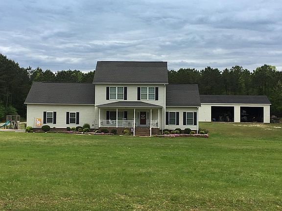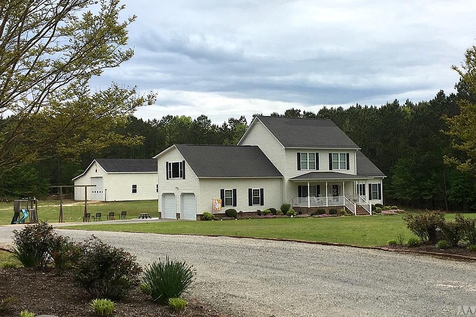 Spacious & open home on 3 acres near the Meherrin River. Beautiful rural setting, no other houses in sight! High ceilings, Low-E windows, very efficient. First floor has dining room, kitchen, den & master suite. Upstairs has 3 bedrooms (possible second master suite), bonus room, FROG & 2 full baths. Perfect yard for entertaining or relaxing, with a front porch and a rear patio, or open up the two-car garage to enjoy more outdoor space. 54' x 97' storage building w/200 amp service, shop with overhead door, 2 open bays, and more. Perfect package for a hobbyist or a home business! A must see!!