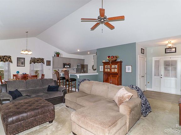 Adorable Ranch Home located on .62 Acre lot w/NO HOA. This property is a gardener's delight, complete with a Blossoming Cherry tree, raspberry & blackberry bushes, numerous Crepe Myrtles and an 8x12 shed for all your gardening/yard tools. Sage, Gardenia & Shamrocks are flagrant ambiences as well. Enjoy the Fall evenings around the built-in outdoor firepit - perfect spot for Smore roasting & hot chocolate or wine! The interior features 3 bedrooms and 2 full baths. Open concept living area. Kitchen with ample cabinet space, granite, SS appliances (Refrigerator conveys) & eating bar overlooks the dining area & great room, featuring cozy gas log fireplace. Primary suite features vaulted ceiling, large walk-in closet, tiled walk-in shower & garden tub surround, along with granite counters. Secondary BRs of ample size each with ceilings fans, sharing a full bath with tile flooring & granite counter. Close proximity to I-77, Lake Norman State Park & growing Troutman area. So Charming!