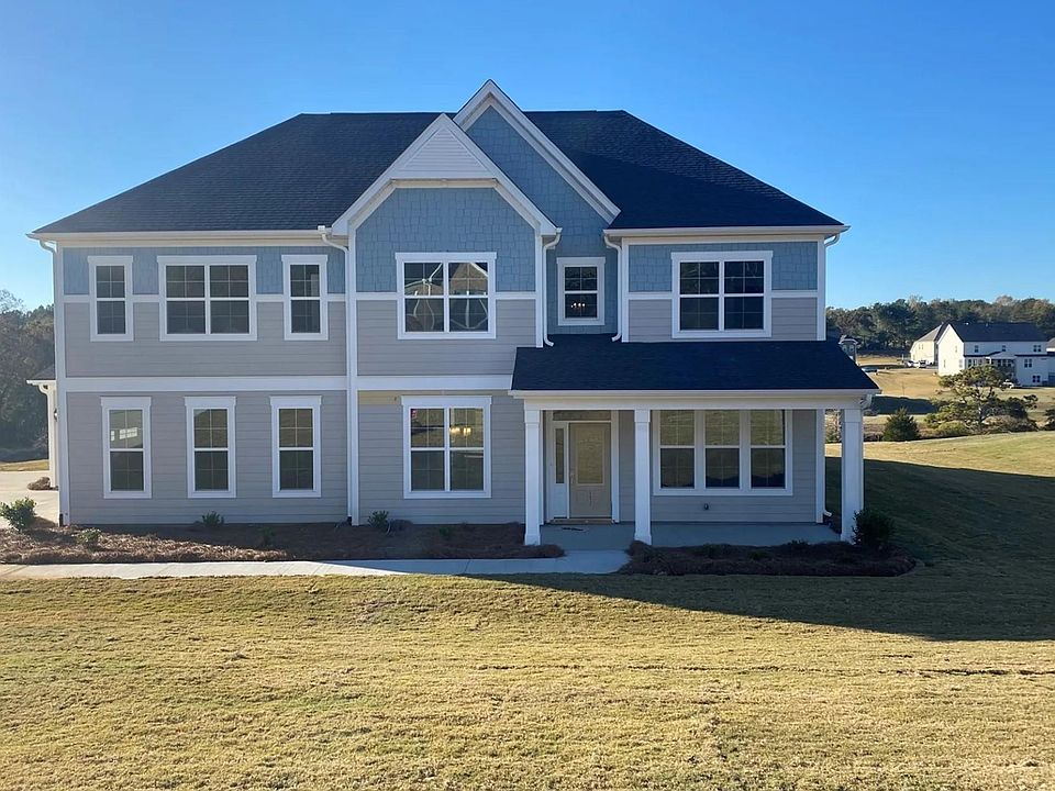 The Livingston is a beautiful five bedroom, two-and-one-half bathroom, three-car side entry garage home with an open plan featuring luxury vinyl flooring on the main level. The foyer leads you to the formal dining room with a coffered ceiling and formal living room with am archway that can be a home office if needed. The large great room with a gorgeous fireplace is open to the kitchen, eat-in area, and covered porch that overlooks a spectacular pond view. This space is perfect for entertaining friends and family or hosting those special holidays! The kitchen features a corner pantry, large island, quartz countertops, and stainless gourmet appliances. The primary bedroom is on the main floor and features a private sitting room that overlooks the backyard pond views. The primary bathroom has a separate tub and shower, water closet, and two large walk-in closets. Upstairs, you are greeted by a large loft that overlooks the great room below. The upstairs also features four additional bedrooms and a flex room for storage or entertainment activities. There is also a full bathroom upstairs.