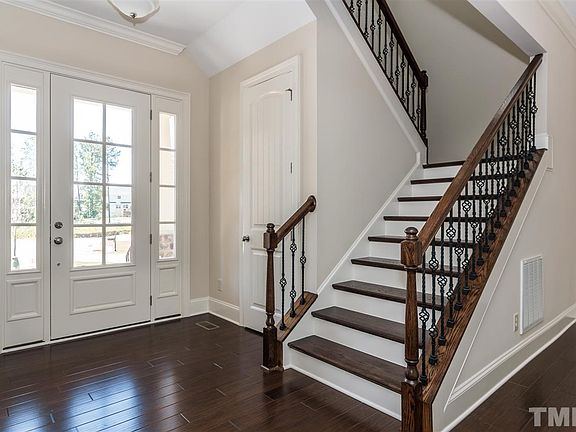 Brand new Harrison flr plan on 0.36 cul-de-sac lot w/wooded backyard*5" hardwoods throughout 1st flr*1st flr w/10 ft ceiling*generous great room* fireplace*granite countertops*double island*entrance w/hardwood staircase*iron pickets for both staircases*1st flr guest bed & full bath*ideal size kitchen w/lots of cabinets*large walk in pantry w/wood shelves*2nd floor features a large master bedroom,bonus room and 4 additional bedrooms plus 3 full baths*front & rear staircase*Easy access to hwy 540,55 and US1