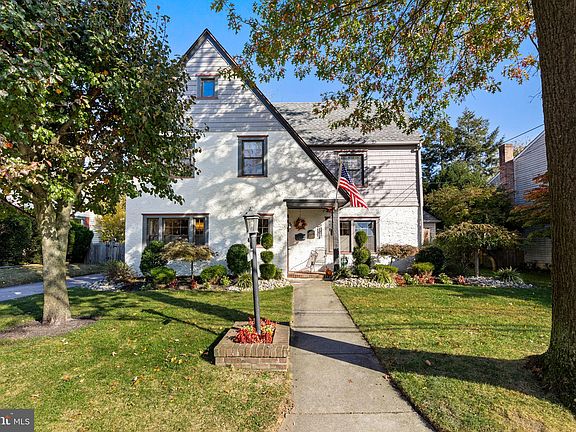 With only 2 owners over the last 7 decades, it is a true testament to the new buyer and next steward of this special Merchantville gem, of the love you will find for this home! Built in 1920, this Community Center neighborhood presents a freshly painted English Tudor featuring 3–4 Bedrooms, 1.5 Bathrooms, and approximately 2600 sq.ft of finished space including the third floor. Just over 3 miles to the Philadelphia speedline (Patco) and walkable to the park, playground, community gardens, tennis courts, little league field, public K-8 elementary school and downtown shops and restaurants, such as the notable Blue Monkey Tavern as well as Aunt Charlotte’s candies and Eclipse Brewing. Step in through the curved original chestnut front door into the vestibule, which features a coat closet and French door leading into the foyer. You’ll find original chestnut woodwork showcased throughout this well-maintained home and replacement hardwood flooring is featured through most of the 1st floor. The formal Living room is drenched in sunlight and offers a Gas fireplace in the floor to ceiling hearth plus a French door leading into the oversized rear family room. To the left of the foyer, enter the formal Dining room with replaced new light fixture and a café swinging door into the renovated kitchen. This lovely Kitchen services exactly what you need for cooking and entertaining, including a full Stainless Steel appliance package plus garbage disposal and breakfast nook for two, plus plenty of cabinets along with Corian counters with an integrated sink. The Family room (which can be closed off entirely for pumping up the volume during those big game nights) includes a Half Bath, vaulted ceiling with fan, baseboard heat and supplemental wall AC. The main floor also features a spacious Office, which has doubled as a 4th guest Bedroom many times over the years and offers a vaulted wood ceiling plus exterior access to a cozy composite deck perfect for morning coffee! The 2nd level features 3 ample sized Bedrooms and a renovated Full Bathroom with granite top vanity, medicine cabinet, sconce lighting and a 2nd linen closet in addition to the hall closet. The primary Bedroom offers dual closets, including a full Walk-In as well as access to the Finished third floor. This 3rd level features plenty of storage and closet options and can easily be converted into a private bedroom suite if desired, otherwise consider it the primary bedroom extension perfect for any need (dressing room/playroom/game room). There is a Basement with great storage space, sump pump, washer and dryer (included!) along with a brand new stationary tub and 200 amp electric panel. Beautiful curb appeal and Gorgeous front landscaping along with front yard Irrigation system all new in the last 3 years. Off street deep driveway parking with a brick lined concrete driveway leads to the fenced-in backyard, which houses another composite deck, as well as a Detached 2 car Garage with electric overhead door and loft storage! Not to be missed, are the 5 yr old Roof and replacement Windows throughout the entire home. This wonderful property is being transferred in present as is condition, and a 1 year home warranty will be provided to buyers for peace of mind!