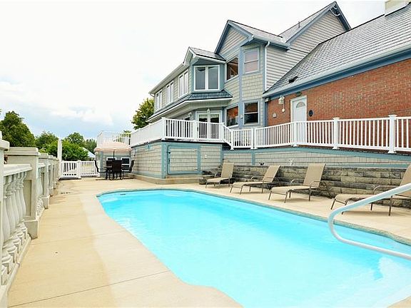 STUNNING 5 BEDROOM ESTATE on CUL-DE-SAC in CENTER TWP.!!! Situated on over a half acre wooded lot w/ heated one piece fiberglass pool w/ lighting that also includes a beautiful hand made stone railing & large patio area! New stamped metal roof installed apx. 2 years ago! 2 sun rooms; one on main level & impressive upper level sun room w/ floating bed, views of the pool, & self contained heating/cooling unit!! Large finished basement, central vacuum & custom shutters throughout!
