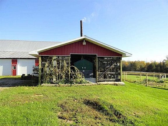 All setup to run your hobby farm. Milking cows, chickens, pigs and more. Could be certified for organic. Possible 5 bedroom 2 bath with master. New furnace with central air. 2 car detached garage with storage above. New 44x60 barn and 60x64 barn. 8x16 green house, fenced in garden area. Woodshed with wood boiler, solar system for the whole farm. 100 acres with 60 acres of tillable land, lots of wild life on property and several dear blinds. Farm equipment could be purchased separately. Year built unknown per the twp card. No sign on property. Wood boiler hooked up but drained and not used in the last year. Stove in kitchen does not stay.