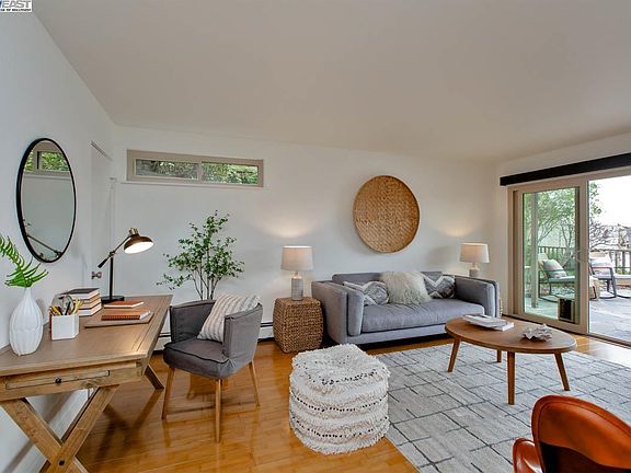Filled with Mid-Century charm and ambience, Beachcomber Condominiums was built in 1959 and is situated at the end of a cul-de-sac on one of the Gold Coast neighborhood's western-most lagoons. Located just blocks from Washington Park, Crab Cove and Webster Street's many boutiques, restaurants and businesses, the home is one of only 36 condos in the HOA complex. This desirable, ground floor end unit features 1 bedroom, 1 updated bathroom, an open living/dining room, an updated kitchen, a spacious private garden + slate patio, and exceptional, unobstructed views of the lagoon that's home to geese, ducks, seagulls, pelicans and hawks. Updates include dual-pane windows/sliding doors, a remodeled bathroom, a modernized kitchen with quartz counters + new cabinet fronts/hardware, and fresh interior paint + stylish light fixtures throughout. The Association has communal boat docks (3) and a heated pool, while the HOA fee covers common area + pool maintenance, heat, water and trash pick-up. Conveniently situated close to Alameda Farmers' Market, Crown Beach, South Shore Center, Franklin Park and shoreline trails. A hidden waterfront treasure in a fabulous Gold Coast location!