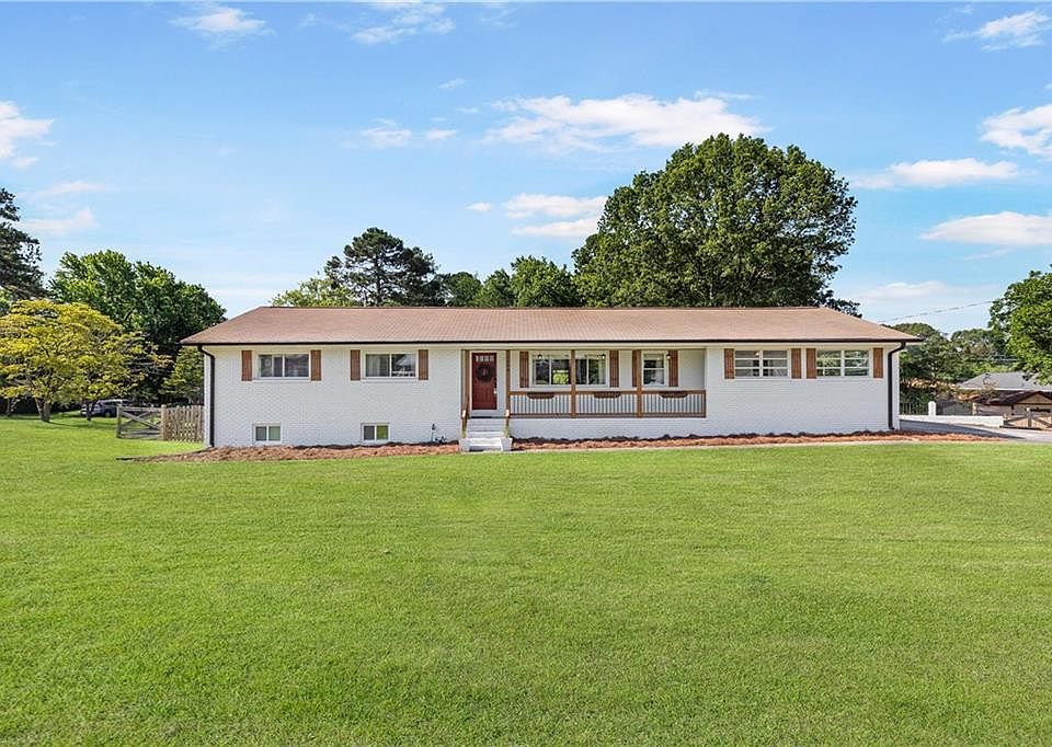 Welcome to this Highly Desirable and fully updated RANCH with 4-sided brick, 4 bed, 3 full baths, on a HUGE corner lot in fantastic Marietta location in sought after schools! When you walk into this beautifully appointed/updated home you will instantly be amazed by the chef’s kitchen featuring white cabinets, stainless steel appliances, elegant Quartz countertops, stainless under mount single bowl sink, HUGE island, and tons of bar seating! The kitchen is fully open to the oversized living room complete with a custom and romantic fireplace to match the exterior. Off the kitchen, walk out onto a large open-air deck overlooking the fenced-in oversized yard, ready for long nights of entertaining. This floor plan features 3 bedrooms on the main level including one bedroom with a cozy ensuite and 2 additional spacious secondary bedrooms and updated hall bathroom perfect for guest access! The terrace level features a proper mud room, outdoor access, oversized living room, oversized bathroom, bedroom, and the second fireplace, painted to match the exterior. Additional features of the terrace level include an unfinished boat door garage, being used as a gym currently. Use this space as an equipment garage, boat, gym, additional storage, workshop, etc.! Home features luxurious LVP flooring throughout the main level. This beautiful ranch is full of natural light. The outside of the home features beautiful white painted brick, newer roof, Newer HVAC, newer windows, HUGE carport with two storage rooms, HUGE fenced in backyard, and back deck perfect for grilling and entertaining for years to come.