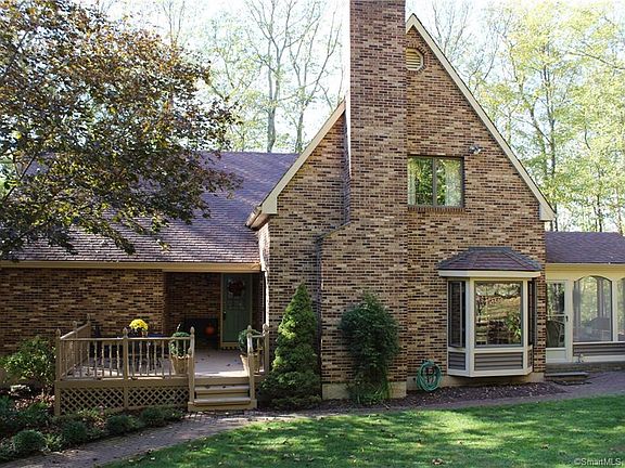 PRICE REDUCED! Beautiful brick Cape on a private lot in a very desirable South Farms location. This one owner home features a first floor Master Bedroom Suite with fireplace . There is an eat in kitchen, dining room, formal living room and family room with fireplace and sliders to a deck. The kitchen walks out to a screened in porch overlooking the beautifully landscaped yard. The basement is unfinished but is plumbed for a kitchen and bathroom and has a walk out. The oversized two car garage has ample room for a workshop. 4 zone heating, newer boiler, newer gutters, newer garage doors, underground wiring for pool or shed and pre wired for driveway lights. New carpeting upstairs. All this with 3 private acres of land makes this a must see home!
