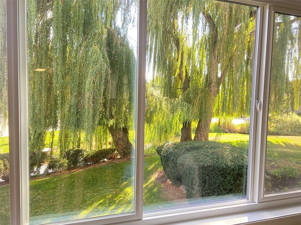 ENJOY SERENE CREEKSIDE VIEWS from this prime south facing corner unit! It is one of the largest units in the building, with over 1300 square feet. The home looks over Mill Creek, gorgeous weeping willow trees, and has mountain and sky views as well. Generous sized rooms throughout the unit provide for full-size furniture, including king sized beds in both bedrooms. Recent updates include all new exterior windows (2025), a new washer & dryer, dishwasher & kitchen stove, lighting throughout, insulated wall in the sunroom and additional cupboards in the kitchen. The building received a new roof in 2017, HVAC in 2019, and new hot water tanks in 2020. This 55+, 2-bedroom, 2-bath home is in a NO SMOKING, NO PETS complex located in the desirable Capri area. Enjoy secure underground parking, generous same floor storage, a common room with full kitchen, a wood working room and bike and tire storage.