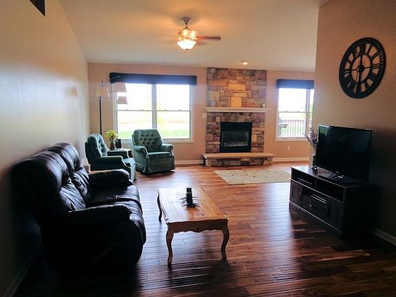 Move right in! This three bedroom, two bath ranch has vaulted ceilings, fireplace, and hardwood floors in the great room, partially finished basement with living room, rec room, 4th bedroom, and another full bath. Also a 2 car attached garage and a 15'' x 20'' deck.