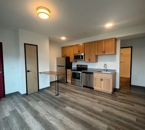 Brand spanking new apartment complex. This Beautiful unit boast of stainless steel appliances in the kitchen, including a microwave, washer and dryer in your unit. Lots of windows for natural light and a large covered patio. Air conditioning as well. Owner pays for your garbage. Off street parking lot and storage closets with each unit. Tenant pays all other utilities.