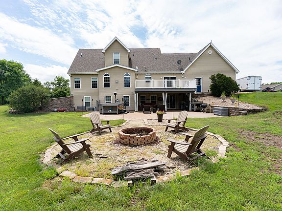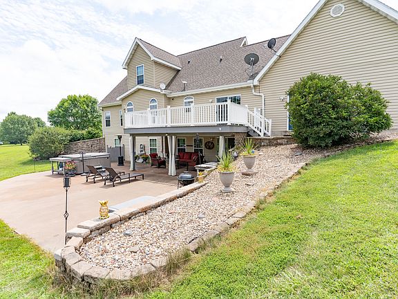 Move in Ready Custom Built 1 Owner 5 BR, 3 1/2 BA 3676 Sq. Ft. Home on 3 Ac.+/-!!! Located Minutes from Moberly in Wildwood Subdivision - Custom Amish Made Kitchen Cabinets, Modern SS Appliances Conveying Including Double Oven, Large Island with Breakfast Bar - Oak Hardwood Floors - Sliding Glass Door Off Kitchen/Dining Room to Deck & Patio - Nice Sized Living Room with Gas Fireplace - Oversized Main Floor Primary BR with Walk In Closet, Primary BA with Jetted Tub & Separate Shower - Main Floor Laundry - New Carpet Upstairs with 2 BR, Full BA & Additional Office Area or TV Room for Kids - Walkout Basement is Finished with Wet Bar - 5th BR & Full BA - Nicely Landscaped Patio with Hot Tub Conveying - Firepit Area - Top Quality Home with Country Feel - Call Today!!