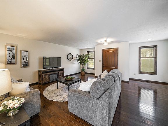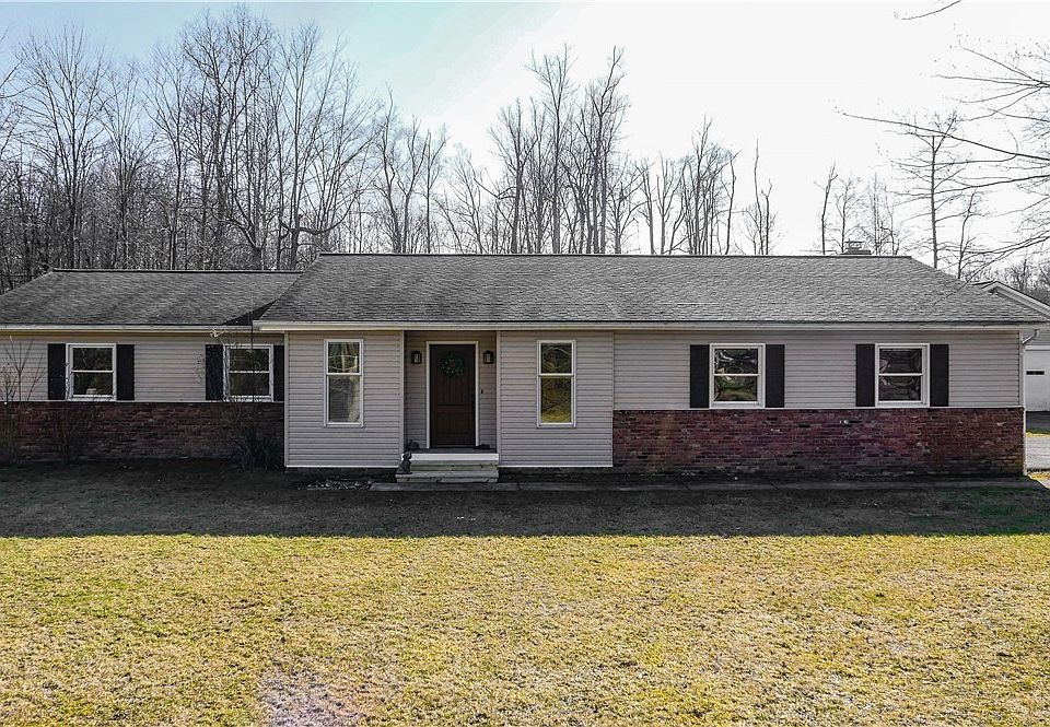 Beautiful 3-bedroom ranch home on over 5 picturesque acres in Aurora. The kitchen has been recently updated with all new LVT flooring, subway tile backsplash, wainscotting, new light fixtures, refreshed countertops, and new stove and dishwasher. The family room features a gas fireplace, beamed ceilings, wood floors and sliding glass doors to the back yard. An addition makes the living room spacious and bright. The main living area and two of three bedrooms have newer, gleaming hardwood flooring. The main bathroom is updated with a tiled shower and flooring and vanity. AC, furnace, hot water heater and most appliances are new or just a couple years old. Newer windows throughout the home. The exterior of the home features a large deck and pole barn. The pole barn has two garage doors and plenty of space for all of your lawn maintenance equipment and recreational vehicles.