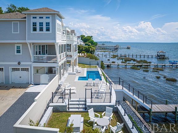 This luxury waterfront home is second to none and a rare find as an immaculate soundfront property in the heart of Duck! Projected to do over $250,000 in rental income annually. Enjoy spectacular sunsets and relax in style from the stunning new backyard oasis complete with a new private pool and built in hot tub, outdoor bar, soundfront patio with fire pit, and new walkway down to your own private pier with gazebo. The interior is just as elegantly designed and furnished, boasting all the amenities--- an elevator providing easy access to all 3 levels, a spacious theatre room, a game room with pool table and bar, and 4 master bedrooms with private baths just to name a few. Located in the coveted Four Seasons neighborhood of Duck, enjoy impressive amenities including a trolley service to take you to the beach in season, a community clubhouse with indoor pool, gym, gameroom, outdoor tennis courts, oceanside community pool with parking, a playground, and basketball court. Easily walk along the Duck boardwalk from the house to get to all the fine dining and shopping opportunities in Duck.