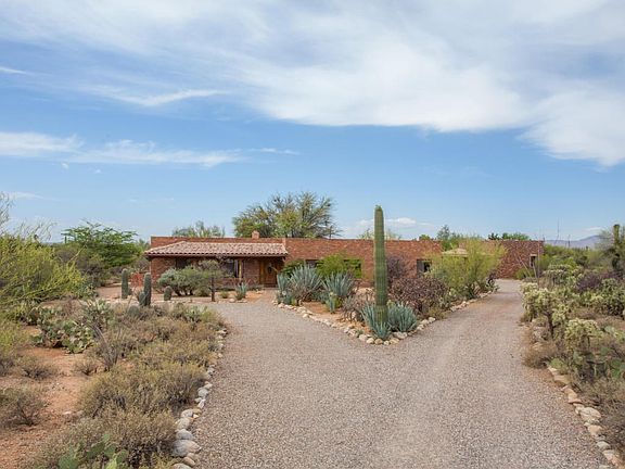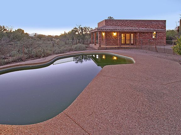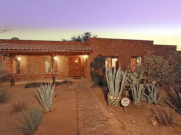 Modern but Cozy Brick Territorial Private Artist Retreat w/detached Guest House/Studio in Gorgeous Catalina Foothills neighborhood of Shadow Hills. Main house is 2401 sq ft with high ceilings-5 skylights so bright & airy- 3 bedrooms-2 full baths-bamboo floors, open/light/bright-intimate kitchen & dining area w/fireplace-large master suite w/fireplace-large Den/office or rec room-District 16 Schools-dramatic Mountain-City lights-Desert views & Pool. GH built in 2000 by Page Repp-646sq ft-large open floor plan-scored concrete floors-skylights make it light & bright-french doors w/covered patio. 1 bedroom & full bath. Lg, private-multi-view .89 of an acre lot w/mature landscaping. This is a unique property-set way back from street for ultimate privacy & desert feel uncommon in Shadow Hills!
