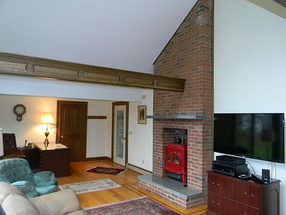 Available for short term or long term rental this modern and elegant 3 bedroom, 2.5 bath ranch features hardwood and tile floors throughout, full basement, great outdoor space, and 2-car garage. Spacious kitchen with Corian counters, breakfast bar, and pantry, master bedroom with en suite bath, vaulted ceilings in the living and family rooms, and expansive views. Very privately set yet located in the heart of the 5 college area, less than 10 minutes to downtown Northampton and Smith College, 10 minutes to downtown Easthampton, and easy highway access. Take in the vistas on the back patio or watch the sunsets from the large screen porch in front. Available Feb. 1st. First, last, and security required-- there is NO rental fee. Good credit and references a must. Landlord pays water, refuse removal, lawn care, and snow removal.