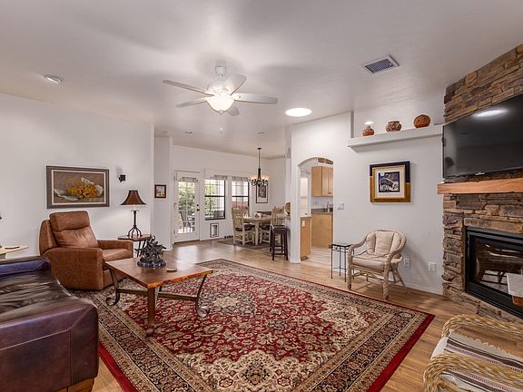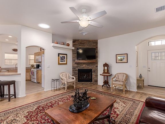 Lovely Tulip model nestled in the heart of Prescott's premier gated adult community. Single level open concept home, with exquisite brand new stone fireplace in large family room. Master bath has new walk-in shower and flooring ,dual sinks, linen closet and large walk-in closet Nice rear covered patio to enjoy. Subdivision features a clubhouse, kitchen, workout room and beautiful outside pool.