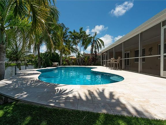 This waterfront pool home sits on a cul-de-sac just two miles from Hollywood Beach. Italian marble wraps the heated saltwater pool which is framed by tropical foliage.. Warm landscape lighting and the "fire bowl" create the perfect mood for entertaining poolside. The oversized screened patio provides more than 400SF of space to relax and take a break from the Florida sun. Inside, you'll find three bedrooms and two bathrooms, both of which have been tastefully updated. The eat-in kitchen features granite countertops, KitchenAid stainless steel appliances, including an induction cook top. All of the home’s windows and doors are hurricane impact. The seawall has been recently rebuilt and will last for decades to come. Don’t miss out on this tropical oasis!