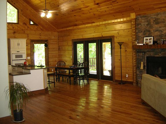 Great Barna log home, 2 stall log sided barn w/tack rm & 28 acres just minutes from town. Main home over 4000 SF w/3 or 4 bedrooms, great room & basement rec room. Guest house 400 SF w/one bedroom & loft. About 8 acres pasture remainder woodland. Wood fencing for horses. Great location just minutes from hospital and shoping. Bring horses. Caves and Indian rock houses to explore too. Will sell guest cabin & 5.5 ac seperate if not needed.
