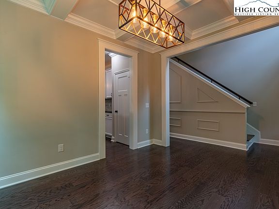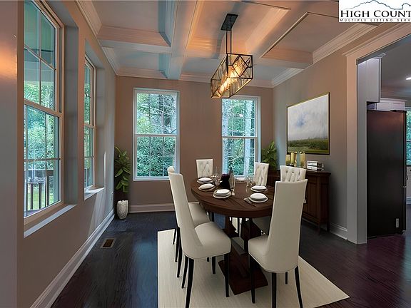 PRICED BELOW APPRAISED VALUE! 2023 newly constructed home is located in the picturesque Blowing Rock Mayview neighborhood, a lavish property nestled within walking distance to the Moses Cone Trail System. The elegant home boasts a living area w/ engineered hardwood flooring & contemporary gas wall-mounted fireplace, creating a warm & inviting atmosphere. The home is designed for entertaining, featuring a generous rear covered deck & cozy covered front porch. Modern kitchen offers the latest technology, stainless steel appliances & hard surface countertops. The formal dining room featuring a coffered ceiling adds a touch of sophistication. The primary BR is conveniently situated on the main level & complete w/ walk-in closets & ensuite bath. The top floor includes a den area w/ surrounding bedrooms. A spacious 2-car garage, & an expansive unfinished walkout lower level features a concrete floor & interior access provides added space opportunities. The paved driveway ensures easy access & professional landscaping. Perched at over 3,600 feet in elevation, this grand 4-BR 2 ½ BA offers a prime location convenient to the Blowing Rock Stables, the Mayview Gorge, and Town of Blowing Rock.