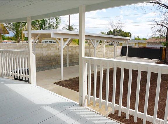 Elegant Home with historic charm & modern touches. Granite counters, original woodwork detailing, elegant built-in's, and superb architectural design. This renovated 3 bedroom 2 bath estate is situated on a beautiful tree lined street in the town of Colton. All new double pane windows, tiled floors, lush carpet, elegant light/fan fixtures, paint/trim, doors, and more throughout. Historical touches include coffered ceilings, wood detailing, built in hutches, bookcases, storage bench window seat, and fireplace. Spacious kitchen boasts new cabinets, granite counters, dishwasher, range hood. Open living room with fireplace and stunning coffered ceiling. Updated bedrooms with new light/fan fixtures, paint, windows, and lush carpet. Master bedroom has elegant bathroom with tiled shower/tub. Large Usable lot. Oversized covered front porch spans across the home overlooking your landscaped yard with white picket fence. Freshly seeded grass. Plenty of parking with long pull-though access to large backyard lot with covered carport and gated alley-access. Welcome Home.