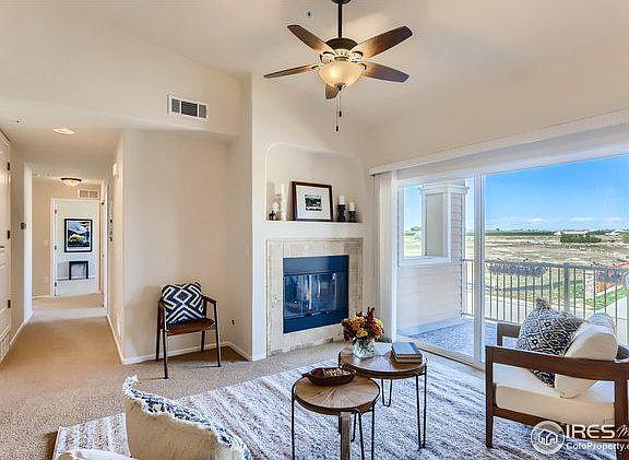 Welcome home to this fantastic location with Nth and West Front Range views from the patio and prairie views from the Living Room. Westerly Front Range views can be seen from the Master bedroom as well. Longs and Meeker really stand out on Colorado Blue Sky Days.This condo is well cared for and offers an easy to use open floor plan. Vaulted ceilings add a spacious feel in the living room and kitchen area. Living space and bedrooms are all on the same floor. All neutral colors give this condo a cozy feel. Though a NW facing condo, the rooms stay quite light with West facing windows in the Master and reflective light elsewhere. The temperature also keeps in check, especially in the summer, with low utility bills and a large, well shaded, private patio that you can dine on. Quick access to grocery stores, Union Reservoir and a fast shot to Lake Mcintosh, Lyons or Downtown Longmont. Very quiet living with a corner location and a two car, tandem garage just below the condo.