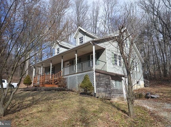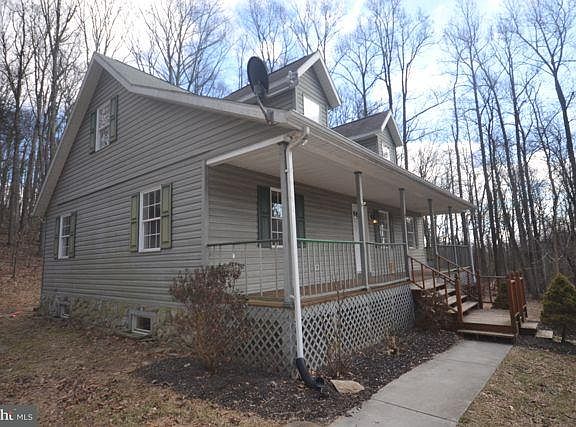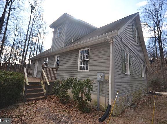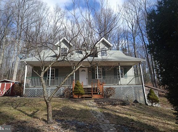 Enjoy a private wooded setting on over 4 acres from this 1.5 story home with vaulted ceilings, balcony and full length front porch. 3 bedrooms, 2 baths, walkout basement, rear deck and over 1800 square feet with additional potential on the lower level. This is a Fannie Mae Homepath Property.