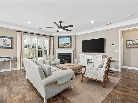 Welcome to your dream home in The Sanctuary at Withers Preserve, nestled in the vibrant Market Common! This exquisite 3-bedroom, 2-bathroom residence combines modern elegance with comfortable living. Step inside to discover luxurious LVP flooring and real wood plantation shutters that add a touch of sophistication. The freshly painted exterior complements the inviting interior, featuring a thoughtful split plan layout. Enjoy the bright Carolina sunroom, perfect for relaxing or entertaining, which seamlessly connects to an extended rear patio. With an automatic Sunsetter retractable awning, outdoor living is a delight, no matter the season. Enhancing the home’s curb appeal and functionality are the widened front driveway and a carefully designed garbage enclosure. Plus, a refrigerator is included, making your move hassle-free! Built in 2017 by Pulte, this home boasts numerous upgraded options, including crown molding and wainscoting throughout. A Moen Flow Flood protector adds an extra layer of peace of mind as does the smart home feature. Don’t miss your chance to make this exquisite property your own! Explore the vibrant lifestyle that Market Common has to offer, just a stroll away from your front door.