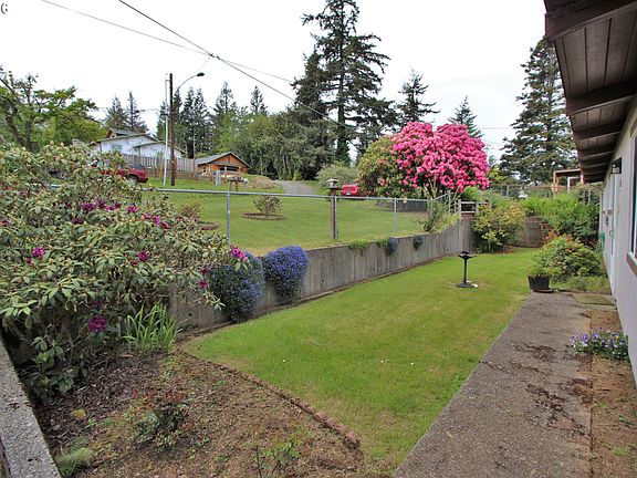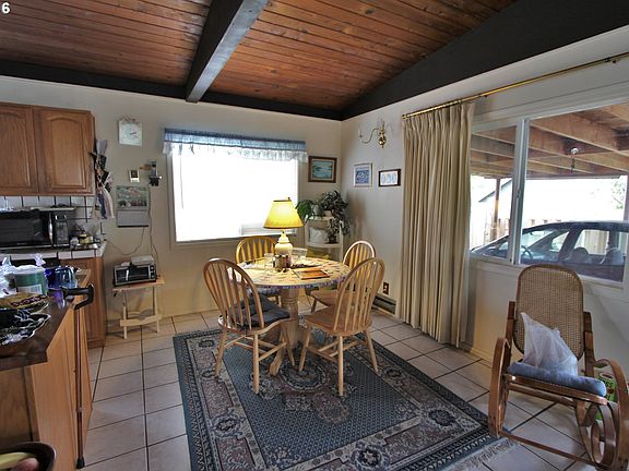 Single level home with updated kitchen, open floor plan (living room, kitchen & dining area). 3 bed 1 bath, vaulted with open beam ceilings. tile floor in kitchen and dining area. Pellet stove insert in the living room with lots of natural light. Home and yard very well kept, in good condition. Large fenced yard with fruit trees, blueberries and grapes. Detached oversized single garage and carport. Approx. 4 year old membrane roof.