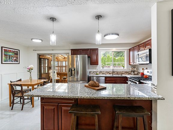 Cozy 1 level Ranch in Montavilla. Inside the front door, you'll find an inviting living room with tons of natural light and gas fireplace, dining room, and spacious kitchen with ample counter and cabinet space. Stainless steel appliances: Frigidaire Professional gas range, (full convection, dual fan) Miele dishwasher, LG double freezer w/French doors. Dining area with sliding glass door leading to the enclosed patio - sit outside with your morning tea and listen to the rain fall and birds singing through all the seasons. Do you dream of a catio??The Primary bedroom includes ample closet space and it's own private bathroom. All three bedrooms with an abundance of natural light, hall bathroom with bathtub and laundry. Garage - 220V outlet wired in for your projects. There is a 4th non-conforming room in garage -- hobby or storage room?Plenty of capital improvements:2013: Radon mitigation system installed. Water heater and e-panel replaced.2014: Furnace replaced and Central A/C installed.2015: Gas fireplace insert installed. 2023: Roof certified, new garage door and new gutters installed.Your own private oasis - Enclosed patio directly off of the dining room, fully-fenced backyard filled with mature plants; including fruit bearing asian pear, apple and persimmon trees (one of each), Rhubarb, raspberry and thimbleberry. The property has been part of the backyard habitat certificate program. The sunny (and mostly enclosed) front yard could also be an urban farmer/gardener's dream - life's a garden, dig it!Within blocks of shops, restaurants, food carts, movie theater, Berrydale Park, access to public transportation and more. Schedule a tour today for the chance to make this house your home! [Home Energy Score = 4. HES Report at https://rpt.greenbuildingregistry.com/hes/OR10215123]