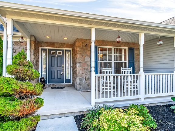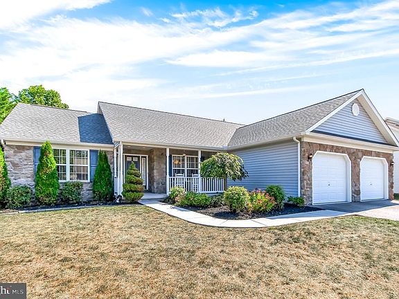 Beautiful well-maintained and updated with stone veneer front rancher with open layout and lots of backyard privacy. This fabulous landscaped corner property offers 3 bedrooms, 2 full baths, solid six panel wood interior doors, hardwood flooring, new quartz countertops, new granite composite kitchen sink, gas fireplace with blower and generous wood mantel, newly installed 50-year architectural shingle roof ( transferrable to new owner) and newly painted kitchen. Enjoy the expansive new composite private deck area with generous size hot tub that leads out from the kitchen through french doors. The handy run in shed (2015) offers secure storage for lawn equipment and outdoor furniture. The oversized 2 car garage offers room for a workshop and has a utility sink with interior and exterior access. Additional living space can be added in the unfinished insulated basement with interior and exterior access and has roughed in plumbing for bathroom. All stainless-steel Maytag kitchen appliances and Maytag washer and dryer, security system, freezer, dehumidifier, stereo system in garage, 2 white rocking chairs are included. Possible handicap accessibility features as well. HOA maintains common area behind property. Great location and lovely setting! Buyer responsible for confirming room dimensions. Front porch staging items are not included.