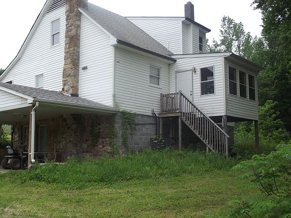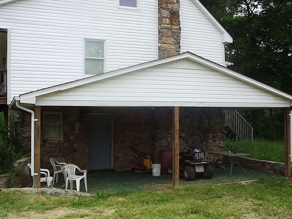1.28 Acres with 2 story home with unfinished upper level which consist of 2 bedrooms, 1 bath, main floor has 2 bedrooms, 1 bath, kitchen has refrigerator, stove, & dishwasher, large rock wall, & dining area, LR , large laundry room with windows across back, all rooms except kitchen has beautiful wood floors. Home has full basement with shop area, large rock fireplace, flew for wood stove, carport area by the basement has custom rock work. Home has porch across the front of house, porch on back, several small storage buildings & shed. large dog pen, orchard & grape vines.