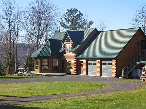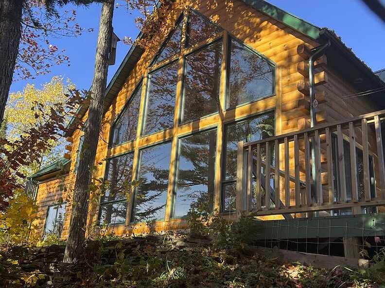 This rustic 2200 sq ft. bilevel, 4 BR, 2 full BA, hilltop log cabin chalet is a must see! Complete privacy! Peaceful and quiet. Open concept great room/kitchen/dining area is perfect for entertaining. Enjoy beautiful sunsets from the dining room, great room or master bedroom deck with wildlife views from each window. 170+ acres of woods and private trails. Hike, cross country ski, snowshoe or ATV/snowmobile right from your front yard. Has well water, solar and windmill power, 500 gallon propane tank, outdoor wood furnace to offset gas prices, radiant heat on the ground level and a new heat pump installed for your master bedroom. Gather your own firewood from your property. Has a backup generator. Mudroom to hang all of your winter/hiking gear. Kitchen has granite countertops. New gas stove. Alarm system with motion detectors, outdoor/indoor cameras and central station. Work from home in your private office, internet ready. Metal pitched roof with attached 2 car heated garage. Detached Amish shed with full electric for your toys. This home is unique with its beautiful land, hundreds of trees and lake view of Eagle Lake. Town is less than 15 minutes away. Schedule your viewing today! Live video showings are also available upon schedule.