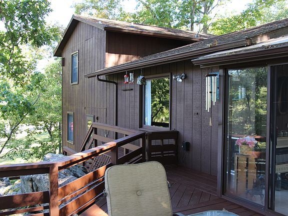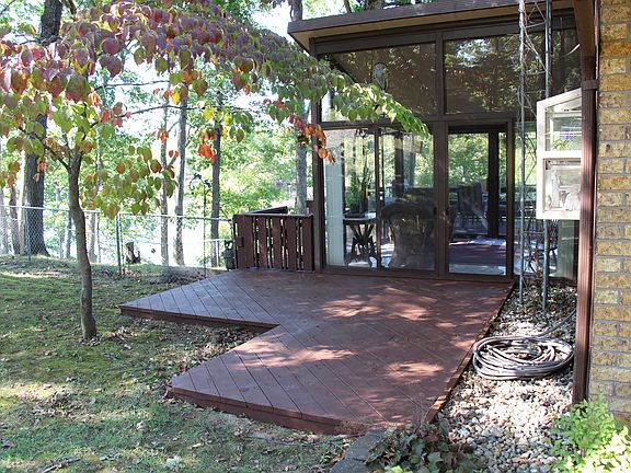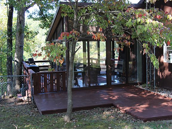 PRICED TO SELL!! An exquisite 3 bedroom 2.5 bath well maintained LAKEFRONT home. Situated on an extra large lot (approx. 126 x 105) that is shaded by mature hardwood trees, you will have a magnificent year round view of the lake. Landscaping includes numerous raised flower beds, a plethora of Missouri wildflowers, ferns and trees, and massive, exposed gray-granite boulders that create a distinctive character and an unspoken strength to this well built dwelling. The home itself has new flooring thru-out, Anderson windows, and new paint inside and out. All rooms are brightly lit and spacious, as is the attached two car garage. Also included is an 8 x 12 detached storage unit. Included are several decks for barbecuing, entertaining family and friends, or just relaxing. There is a 12 x 12 breezy sun-room, with sliding screen doors on three sides. And not forgetting Rover (or Rovette), there is a pet door and a fenced-in area for your four legged family member... With all home maintenance completed and updated appliances included, you will have plenty of time to enjoy swimming, fishing, and or boating from the privacy of your own boat dock. Or just hangout lakeside at your fire pit, that includes two freshly stained decks, picnic table, swings, and a refrigerated, private bar.