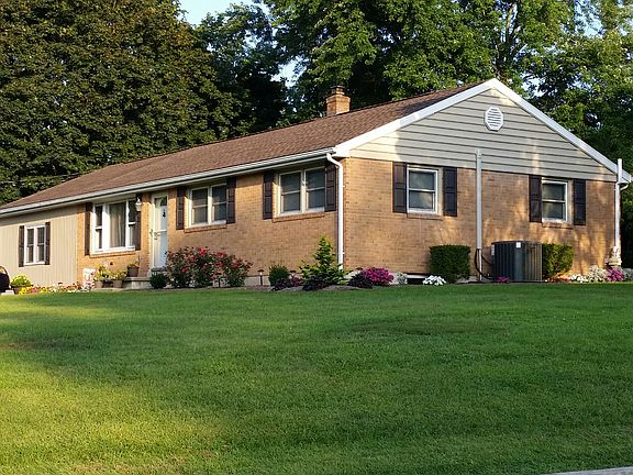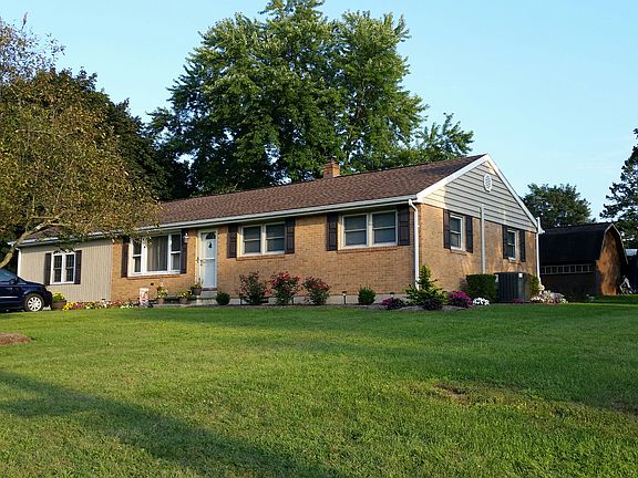 Enjoy one-level living in this solid, well maintained brick and vinyl rancher situated on a large corner lot in a quiet country neighborhood. Move-in ready, neutral decor, nicely landscaped. Vaulted Ceiling in open concept Kitchen and Dining Room, large breakfast bar, spacious family room. First-floor Laundry Room. Newly refinished Lower Level with plenty of room for entertaining and ample storage. A workshop/tool room, too! New Trane Central Air System with Transferable Warranty. Roughed out plumbing for additional bathroom in Lower Level. Two-story storage barn on concrete slab. Desirable Palmyra School District. Close to local amenities, easy access to interstates.