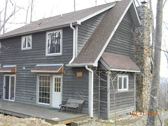 Top of the mountain beauty in this fabulous 3/2 on 2+/- acres. Open kitchen/dining/livingroom with beautiful custom stacked rock fireplace. Lots of room and in a lovely wooded setting. Large open back deck for convenient grilling and large covered front porch to relax and watch the sunsets in the evening. Interior features Red Oak hardwood floors and ceramic tiled baths.