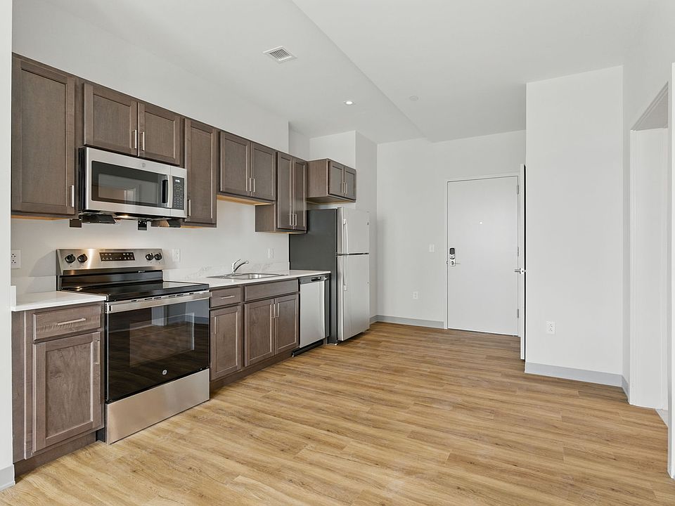 Quartz countertopsSpacious studio unitStainless steel appliancesAmazing natural light