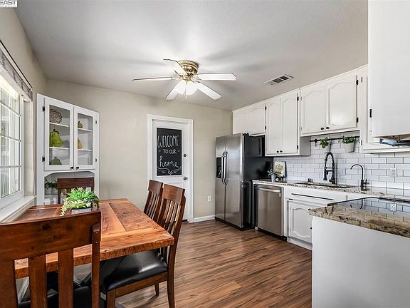 Welcome to your delightful & updated single story home! From the moment you walk in the front door, you will be charmed by the warm wood like flooring, bright new windows, & easy-flowing floorplan. The spacious living room features lovely built-in cabinetry, perfect to spotlight your favorite decor pieces, use as a home library, or transform into a great minibar. The adjacent kitchen features gorgeous new subway tile backsplash, white cabinetry with plenty of storage for all your pots and pans, and newer appliances. All three bedrooms have access to the fully-fenced backyard, complete with an extra storage shed and a large patio, perfect for entertaining. With updated copper plumbing, electrical & HVAC, that will be one bit of comfort for you when you move in. The home also comes equipped with a Ring doorbell and a smart thermostat. Conveniently located in North Livermore, youll enjoy easy access to all the amenities you need - including a Trader Joes and multiple parks & library.