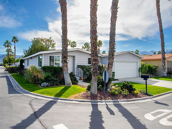 What a great opportunity to live in one of the most beautiful and prestigious parks in town. This Gated Senior community looks like a regular housing tract of homes. All Homes have a 2 car garage, and amenities include pool, spa, clubhouse, fitness room, billiards, sauna, tennis, and much much more. This cute home is perfectly located on a corner lot in a quiet cul-de-sac in the center of the complex. It offers a two car garage, exquisite rear garage, and has been meticulously maintained. Whether you're a part time or a full time resident, this home is just what you've been waiting for. Affordably priced, and close to shopping, restaurants, and post office. Come and see this one before someone else snaps it up.