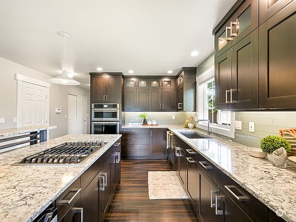 Custom-built rambler on 1.24 sunny acres! This meticulously maintained 3-bed + office home features 2+ bath & an open concept layout. The entertainer's kitchen offers quartz counters, pantry, tile backsplash, bamboo floors, & newer SS appliances. The dining area is conveniently located near the spacious living room, which overlooks the fenced backyard. The private primary suite boasts an oversized en-suite w/a walk-in closet & deck access to the hot tub. Two additional spacious bedrooms share a full bathroom w/a double vanity. A mudroom off the large 2-car garage adds convenience. The sun-drenched lot is a gardener's paradise, w/mature landscaping & bountiful fruit trees. With a new roof & fresh exterior paint, this home is move-in ready!
