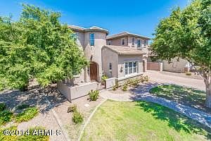 Immaculate Gilbert home in exclusive Artemina is perfect for family living. Neutral colors, 14 foot ceilings, private interior atrium and an abundance of windows give this open floor plan a light and airy feel! Upgraded tile floors, marble in the family room, gas fire place, sound system, speakers in every room, including outside, and surround sound in family room are just some of the added features. Large Chef's kitchen includes gas cook top, upgraded cabinets, walk in pantry and large island with breakfast bar. Huge Master suite upstairs with soaking tub in the bath. NORTH/SOUTH exposure, CORNER lot. Upgraded insulation. Backyard oasis includes putting green, built-in BBQ, fireplace, commercial misting system and heated salt water pool/spa.