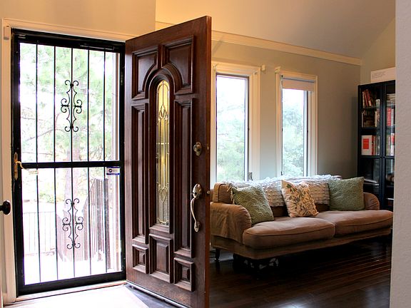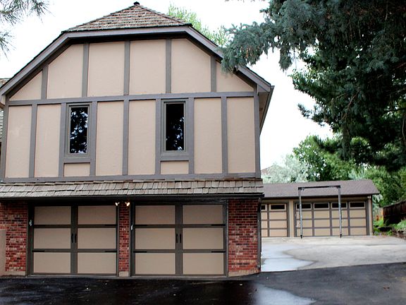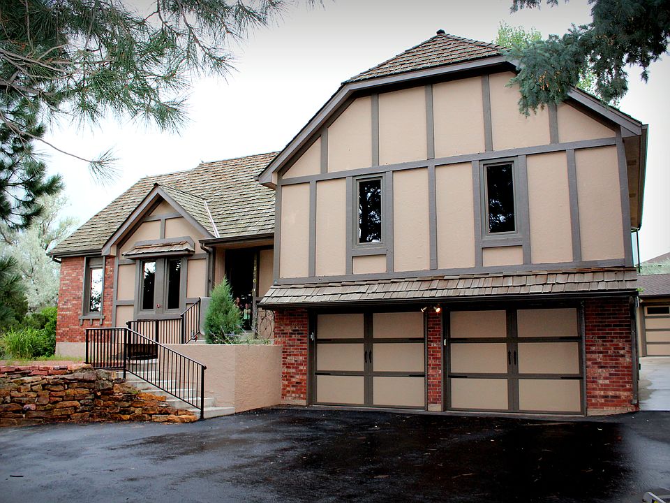 Enjoy this updated multilevel home in the sought after Comstock Village community. Nestled on a private flag lot with gorgeous views of Pikes Peak, this Tudor style home is the perfect family choice, with short walks to D20 elementary/middle schools, a peaceful neighborhood setting, and almost 1/2 acre to explore. The interior features numerous upgrades, including brand new hardwood floors and carpet throughout, new lighting, completely remodeled kitchen with copper accents, farmhouse sink, a lovely pickled pine paneled ceiling, and all new appliances, including an induction range with double oven. Other perks include air conditioning for cool summers and solar panels for energy efficiency. A cheery breakfast nook, vaulted ceilings, two fireplaces, and built in bookcases and window seats give this home a classic, cozy feel. Outside amenities include a large deck, two sheds, and a detached three car garage for the car lover or workshop enthusiast (in addition to two car attached garage with laundry).