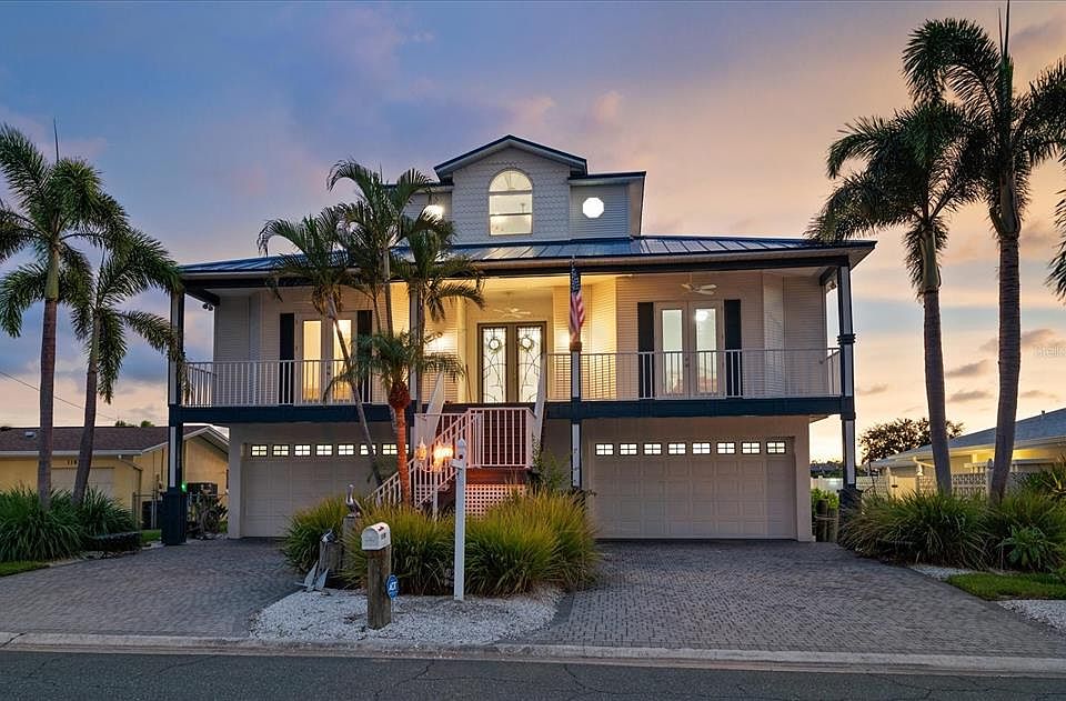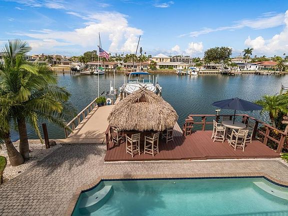PRICE REDUCITON - GREAT PRICE! - WELCOME TO YOUR WATERFRONT COASTAL PARADISE! This remarkable 5-bedroom, 3.5-bath waterfront home offers over 4,000 square feet of luxury living, blending timeless design with modern features for the ultimate Florida lifestyle. From the moment you arrive, the coastal metal roof installed in 2019 and grand entryway set the tone for the elegance within. Inside, you’ll find expansive living spaces highlighted by two fireplaces—one in the inviting living room and another in the private primary suite. The chef’s kitchen opens seamlessly to spacious dining and gathering areas, making it ideal for entertaining family and friends. The primary suite completely remodeled in 2021 is a sanctuary, featuring its own fireplace, spa-inspired bath, and a private top-floor terrace where you can watch spectacular Gulf Coast sunsets. Additional bedrooms are generously sized, and the dedicated office provides the perfect work-from-home space. A game room ensures endless fun, while the thoughtful floor plan creates harmony between everyday living and entertainment. Two new air conditioner systems installed in 2019 and two new water heaters in 2022. Outdoors, your private paradise awaits. Enjoy a refreshing swim in the heated salt water pool with a new pump installed in 2025 and salt generator. You also can take advantage of the 20,000LB boat lift and updated double-sided dock for effortless adventures on the water. With a 4-car tandem garage, there’s room for all your vehicles, toys, and storage needs. Exterior completely painted in 2023. This home was designed for those who love to gather, celebrate, and live life to the fullest. Every detail of this home was crafted for connection and celebration—whether gathering around the fire on cool evenings, hosting sunset soirees on the terrace, or enjoying quiet mornings watching dolphins play in the bay. This is more than a home; it is a lifestyle, a statement, and a legacy. Call for your private showing today!