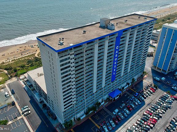 Simply breathtaking! Completely turn key and renovated down to the last detail! This 3 bedroom 2 bath oceanfront end unit in the Carousel generates over 70k in rentals and is in pristine condition! Entering into a second living room/flex room you will immediately notice the attention to detail and quality finishes. Updated luxury porcelain tile was installed in 2020 throughout the living space and new carpet in the bedrooms. The dreaded popcorn ceiling was completely removed thought-out the entire unit! Open the blinds in this first room and you get an amazing view of the Assawoman Bay and Ocean City skyline. Off of the entry room is the first bedroom you come to which features new carpeting, custom closet doors, a new queen mattress set and an incredible bayside view from the window. Further down the hall you come to the second bedroom featuring 2 full beds each with new mattresses, new carpet and a great view of the ocean and skyline from the 2 full length windows. Across the hall you find one of the 2 full bathrooms completely updated with a new vanity and flooring. Entering the main living space you first find the kitchen featuring new stainless steel appliances in 2022, a beautiful quartz countertop, custom backsplash made by American Tin, and an eye-catching antique butcher block kitchen island that was custom made for the space. Just off the kitchen is the dining area featuring a gorgeous custom made antique table that matches the kitchen island and seats 9 comfortably! The family room has a new comfy sectional couch to relax and enjoy the cable and internet included in the condo fee! The oceanfront owners bedroom is pure bliss. Offering a new king mattress set, an immaculate solid wood bedroom set, custom closet doors, and an updated owners bathroom with a modern quartz vanity and glass shower doors. The impressive oceanfront balcony can be accessed from the family room and the owners bedroom and comes complete with new durable poly wood deck furniture. Sit and enjoy the sound of the waves in style! Here is your chance to own a premiere property in a top notch building in Ocean City, MD!