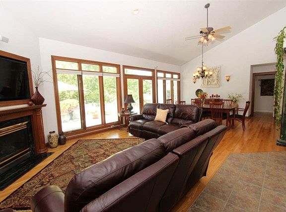 This captivating north side cape cod with superb curb appeal received a 2,415 square foot addition in 1998 that beautifully compliments the original structure. Landscaping on this lovely 3-acre lot was designed by award winner Dallas Foster. Enjoy watching wildlife in this park-like setting as you relax on either your 900 sq. ft. Trex deck or 1,100 sq. ft. custom paver patio. With 3 acres, you have room for entertaining close to home or venturing to the huge fire pit in the back of the property where camp-outs and adventures await. As you enter the home you'll notice the old-world cottage charm of the plaster crown molding in the living room and unique plant shelf and 16-ft soaring ceiling in the great room. Fehrenbacher cabinets, along with granite counters and a custom backsplash make this kitchen warm and inviting. The wall of windows in the great room brings the outdoors in, and the master bedroom suite features a sitting area and huge bay window where you can relax while taking in the natural beauty of the property. There is another bedroom on the main level with hardwood floors and 3 bedrooms upstairs with large walk-in closets. The rec room provides a great entertaining space with the included pool table, and room to create space to relax, with a door to the over-sized 3-car garage. The lower level features an office, full bath, and family room with a sink for a wet bar. This is the perfect home to create memories to last a lifetime.