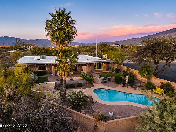 This 4.76-acre estate in the Rincon Mountain foothills offers a rare opportunity to live near Saguaro National Park East, surrounded by natural beauty and historic charm. The chef's kitchen, equipped with granite countertops, a 5-burner gas cooktop, dual ovens, and a spacious walk-in pantry, anchors the home's functional design. A split-bedroom layout and sizable Great Room design provides both comfort and versatility. Outside, the landscaped grounds feature low-voltage lighting, a fire pit, and a private poolside retreat perfect for hosting gatherings, unwinding, or for family fun. The property includes space for horses (zoned), gardens, and future additions, along with an attached 2-car garage and a detached 2-car garage, both temperature-controlled. Framed by the Rincon Mountains,