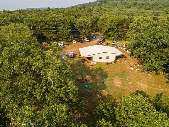 Great area for hunting and fishing, just down the road from National Forest! Part of Lee Creek backwater known as the fish trap joins the back! Lots of deer and other wildlife. Over 1 mi of paved rd frontage, city water & 2 additional taps. 3BR, 1.5BA fixer upper brick & frame home. Detached, insulated metal shop w/ 110 & 220, slab floor, a 10 ft door and a 12 ft door. Approx 60 ac cleared, 2 ponds, several outbuildings. Prequalification letter or proof of cash funds requested before viewing property