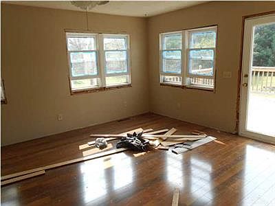 ATTENTION: PRICE REDUCTION!! Great location! Needs finishing touches... Home has new flooring in living room and both bedrooms. Replacement windows. Large deck off Master bedroom. Main bathroom also has closet for washer and dryer. Almost an acre lot (.88). Detached 2.5 car garage with work areas. Being sold in "AS-IS" condition. As Is Fixer-Upper