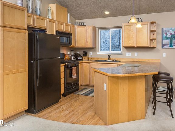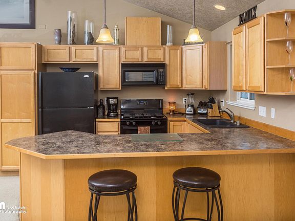 This beautiful townhome is centrally located in Eagle River and just a short commute from Anchorage and JBER. The upper floor features an open kitchen and living room with deck, master bedroom and bath with jetted tub plus shower, and a half bath for guests. Two bedrooms and a full bath are located downstairs, as well as the 2 car garage.Situated in a well run condo association with low dues.