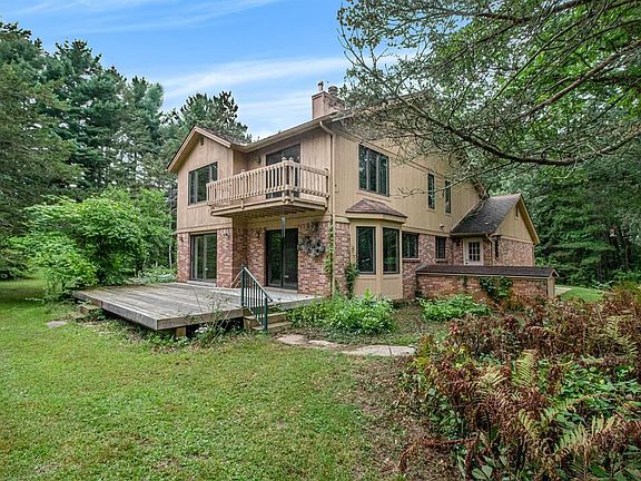 Beautiful private setting of 8.6 acres on 10 acre Mosher Lake for phenomenal fishing along with rolling land and woods for plenty of peace and quiet! Lovely 4 bed/2.1 bath home offers tile entry leading to family room with cozy fireplace and door wall overlooking the gorgeous lake views. Spacious Oak kitchen offers eating space & extra sitting room with door wall to enjoy the back yard with dock and gazebo at the lake's edge. Two convenient main floor beds share full tile bath, along with main floor laundry. Upstairs offers oversized master suite with private lakeside balcony along with tile bath with vanity, double closets & separate tub/shower. 2nd generous bedroom, half bath and huge possible 5th bed with addition of a closet or use as a second family room/hobby room, etc. Full w/out basement has wood burner and ready to be finished as you like along with newer furnace & AC. Large yard with outbuildings, lots of mature trees, natural landscape & pathways throughout to fully enjoy the property. Fiber optic high speed internet will be in by the end of the year too! Ready for new owners today!