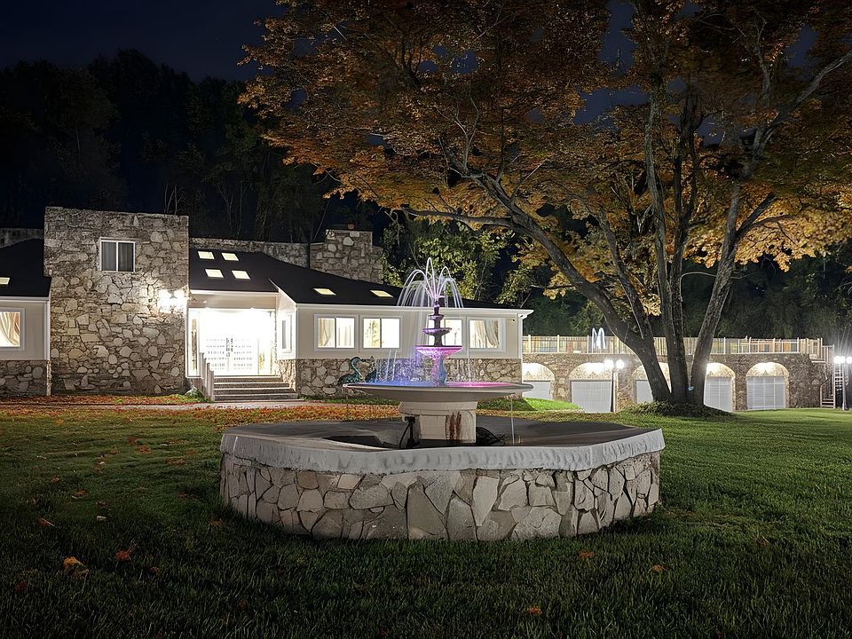 Waterfall islandEight-burner rangeGated entranceElegant chandelierBuilt-in professional refrigeratorGrand gated entranceStunning front-yard fountain