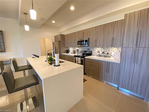 Right off McGregor Blvd-Fort Myers most famous & historic street-takes you from downtown all the way to the beaches in Fort Myers & Sanibel! Built in 2018, this unit is representing the MAGNOLIA Floor Plan-3bed, 2bath +Den Condo over 1,850 sqFt.(96 sqFt. screened in lanai included).The split bedroom floor plan (where the master suite is isolated from the rest of the other bedrooms) is perfect for families with kids or having guests over! Walk in to pure luxury when entering the kitchen with quartz countertop, waterfall style island and European style cabinetry. The 10-ft ceilings and 8-ft doorways give the whole condo an even more spacious & luxurious touch! Gated entrance, hurricane impact windows & street lights over your covered parking are giving you all the privacy & security you need. Step out and enjoy Florida's Lifestyle with your friends/family on the spacious sun deck with a geometric swimming pool & heated spa or maybe dinner by the outdoor BBQ area? Having Shops,Restaurants,Target, Starbucks and much more right around the corner & the ONLY 4 mile drive/bike ride to the beach is making this Condo the perfect annual/seasonal rental or a 2nd home to escape the cold winters